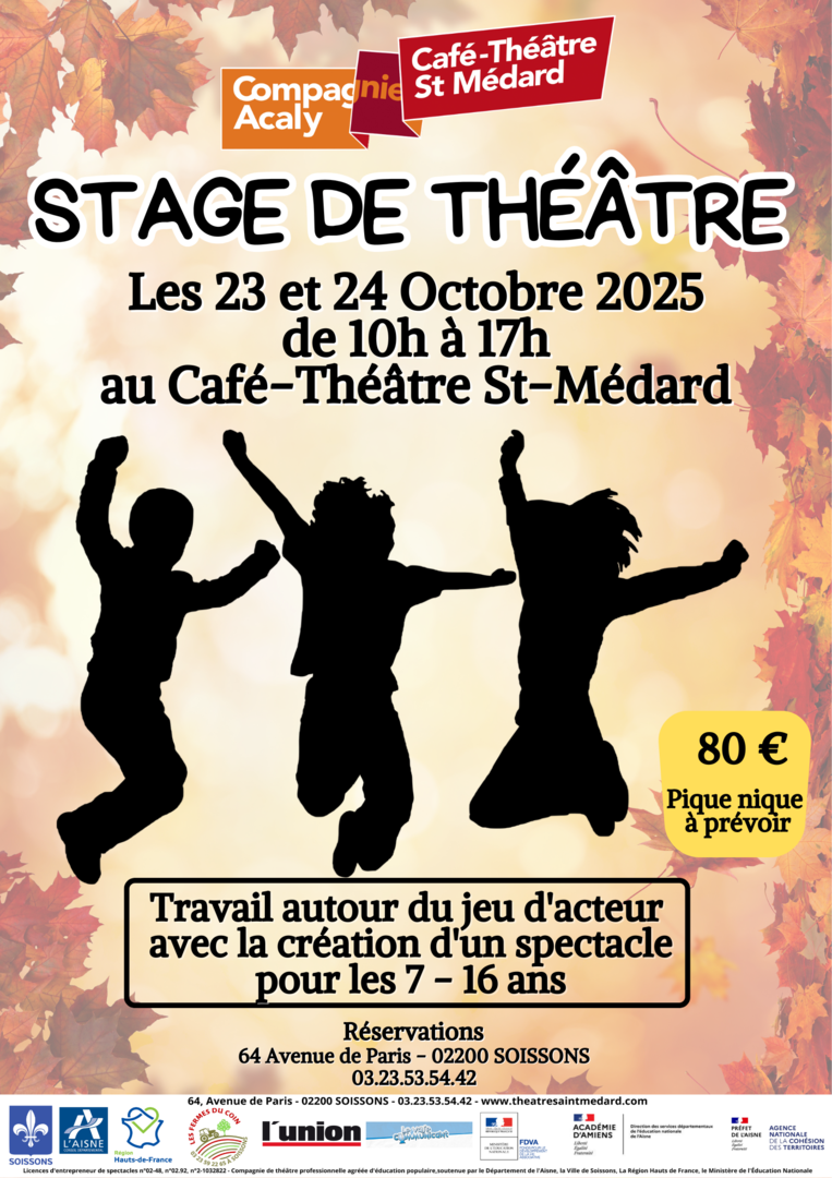stages de théâtre pour tous les âges. Dès 3 ans, ces ATELIERS animés par des comédiens professionnels, permettent de découvrir les plaisirs de la scène, autour du jeu d’acteur, de l’affirmation de