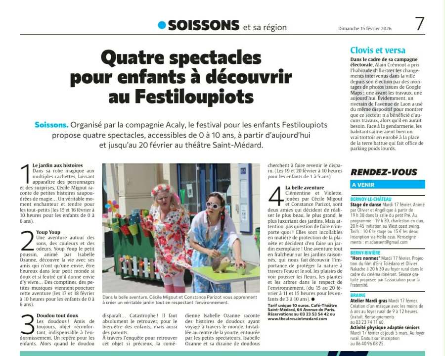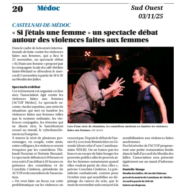 Retrouvez ici tous les articles, toutes les vidéos concernant le Café-Théâtre Saint-Médard et la Compagnie Acaly ! Les infos des plus récentes aux plus anciennes...
